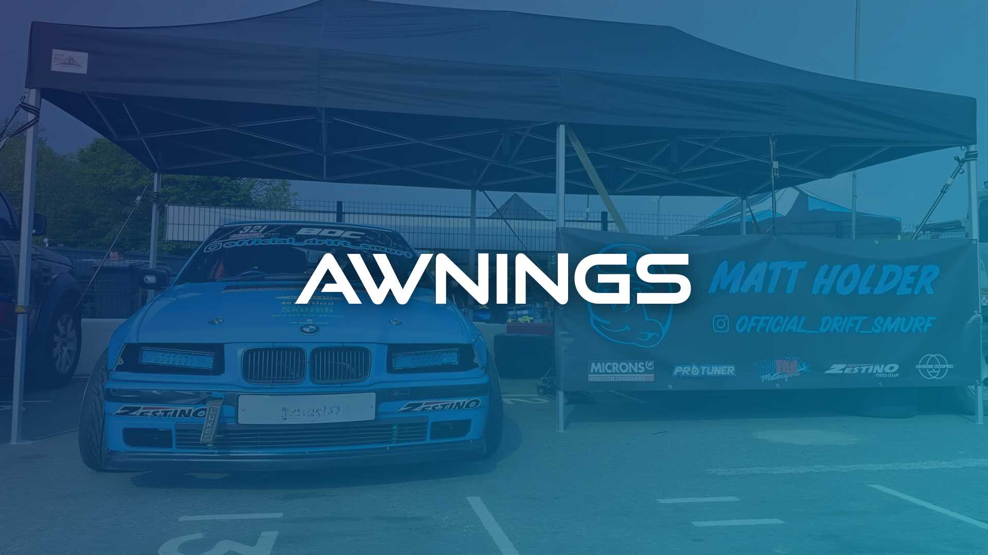 Take a look through our selection of standard and printed pop up Motorsport awnings