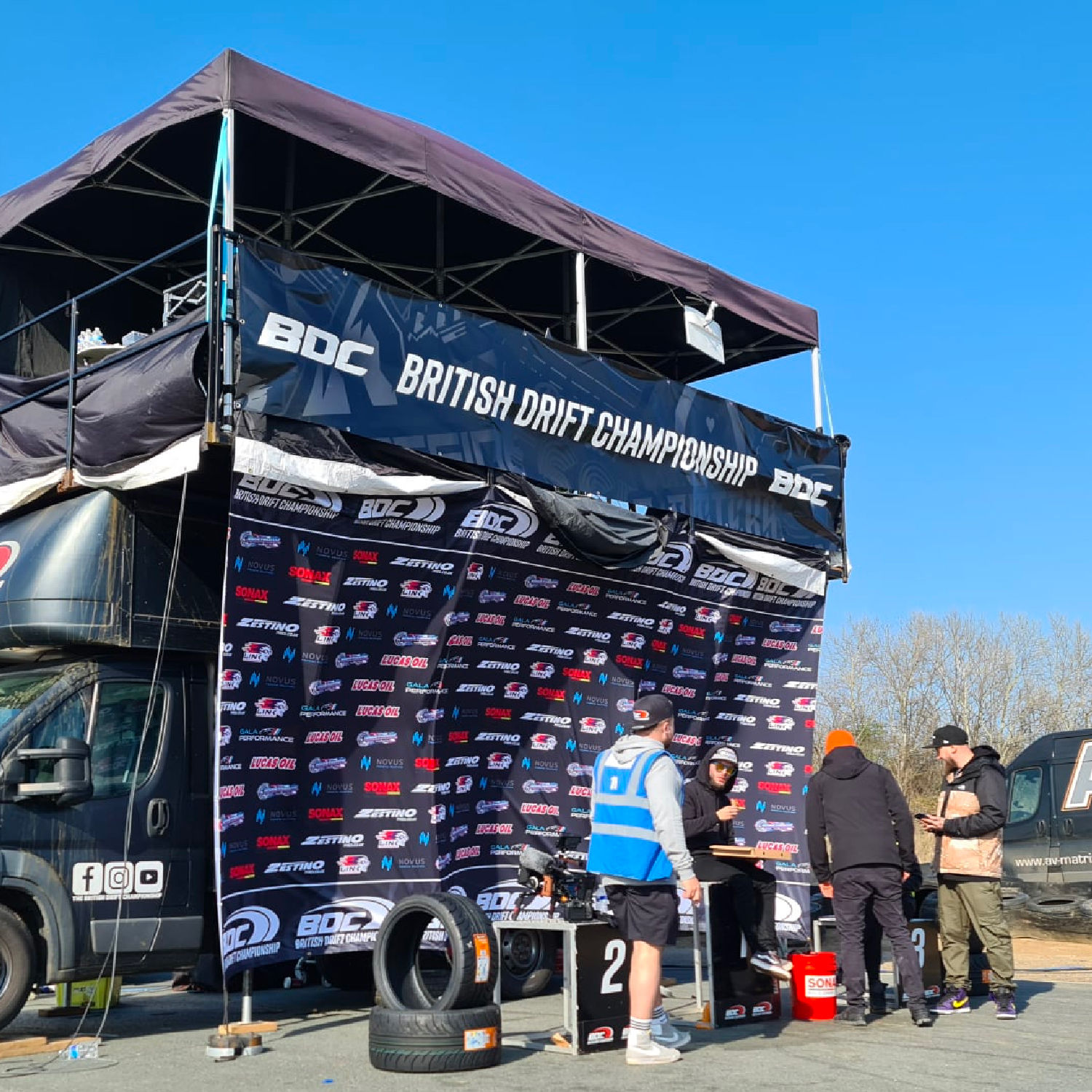 Common sizes for the back of a race tent are 3 m or 6 m wide, depending on the footprint of your awning. Many teams match the width of their Pro range gazebo or MQ 65 awning so the banner spans the full rear wall. If you are unsure, measure the space or send us a photo and we can recommend a suitable size.